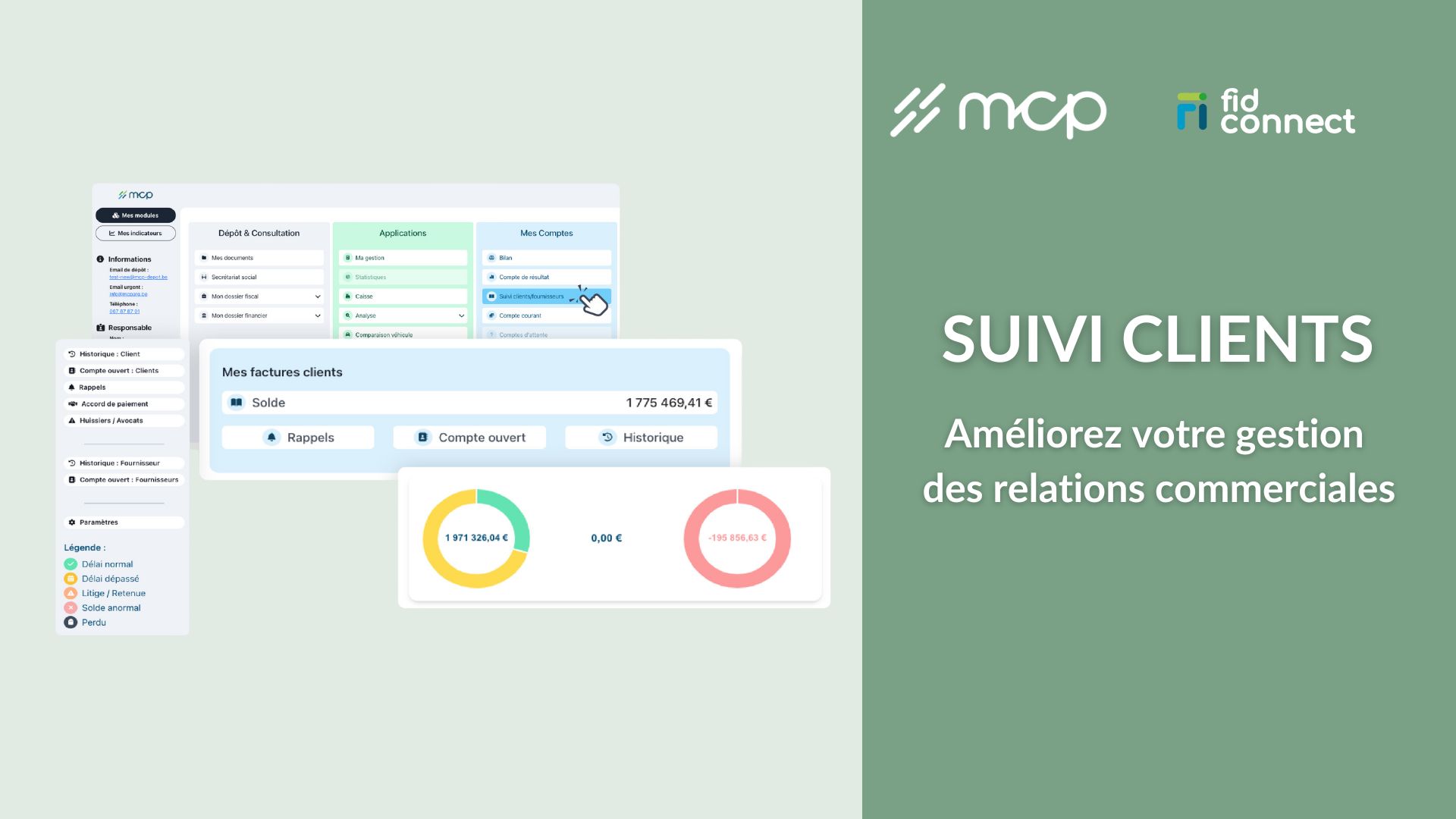 - Le « SUIVI CLIENTS » vous permet de connaître en temps réel d’encodage les clients possédants des factures impayés, et de prendre les mesures nécessaires pour accélérer leur recouvrement. À partir de 2026, il sera possible de connaître en temps réel la situation des factures impayées.
